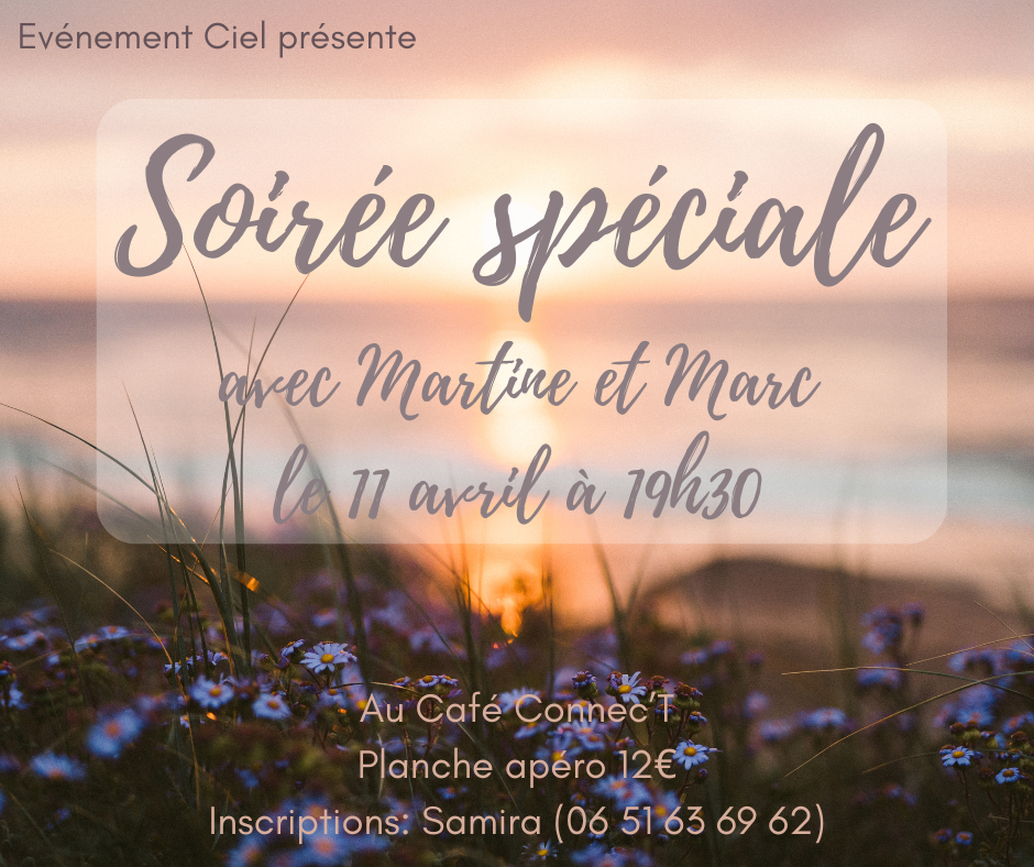 Vous êtes invités pour une soirée spéciale le  11 avril à 19h30 au café Connec’T avec la participation de Martine et Marc.